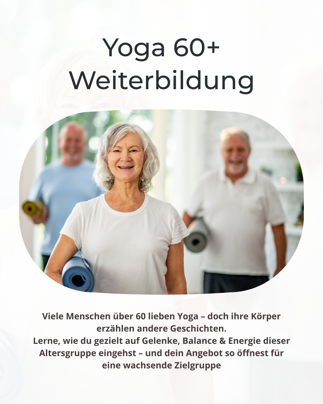 Die Gesellschaft wird insgesamt älter, aber dadurch auch das Bewusstsein noch fit im Alter zu sein und bleiben. Die Weiterbildung richtet sich an interessierte Übende, aber vor allem an YogalehrerInnen die Ihr Angebot auf diese Altersklasse erweitern möchten.